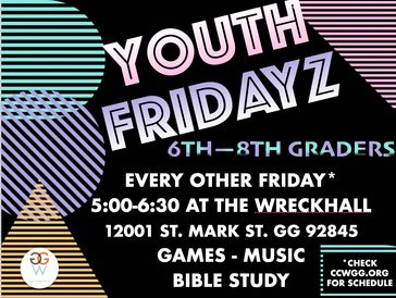 Every other Friday, the middle school aged kids meet at the Wreckhall for games, Bible study, worship and connection!